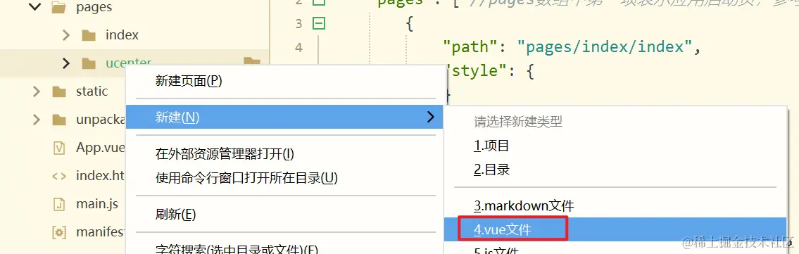 然后去pages.json文件中设置页面路径,同时也可以配置一下页面样式。