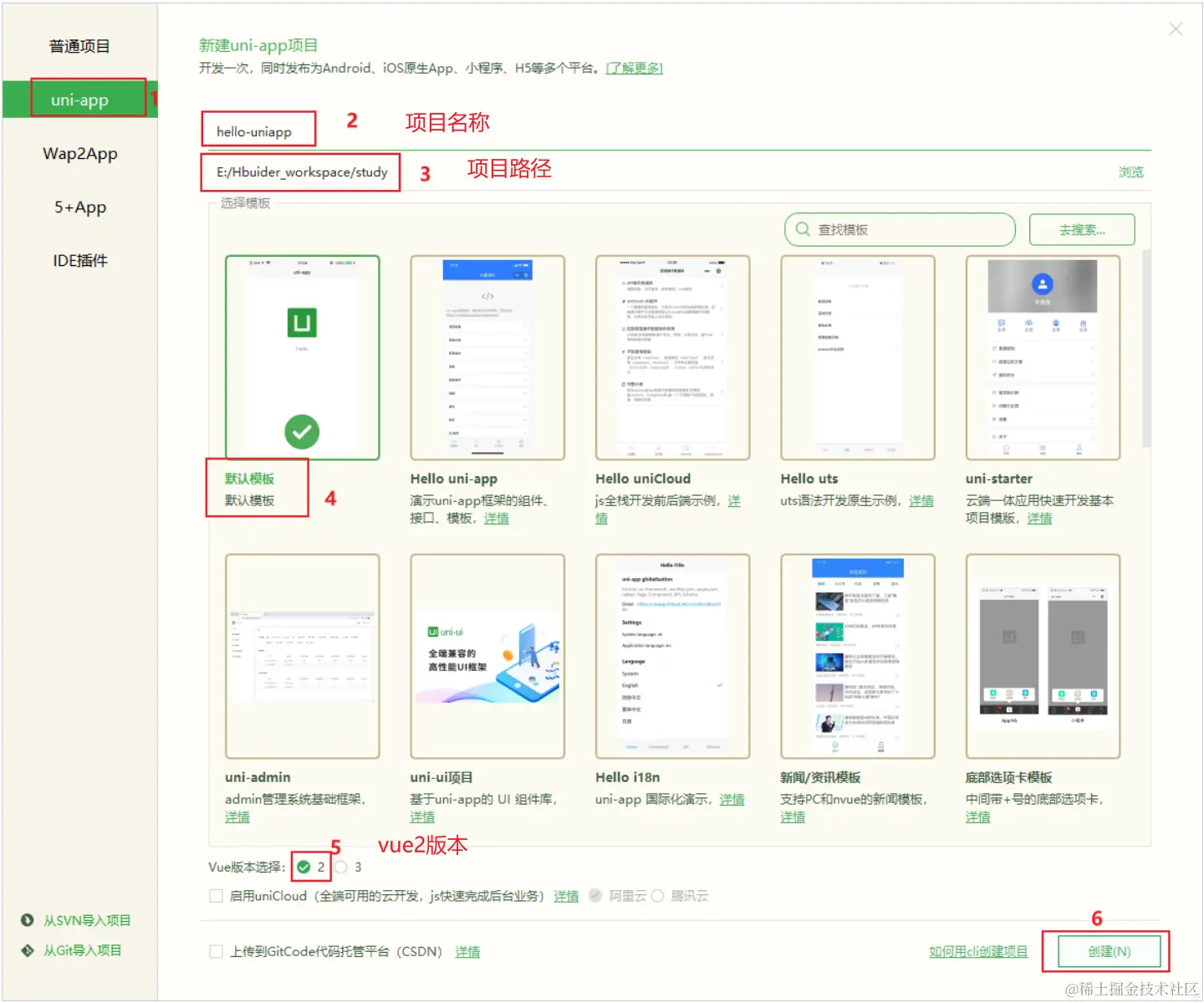 然后我们新建一个uniapp项目,按照下图操作即可。
