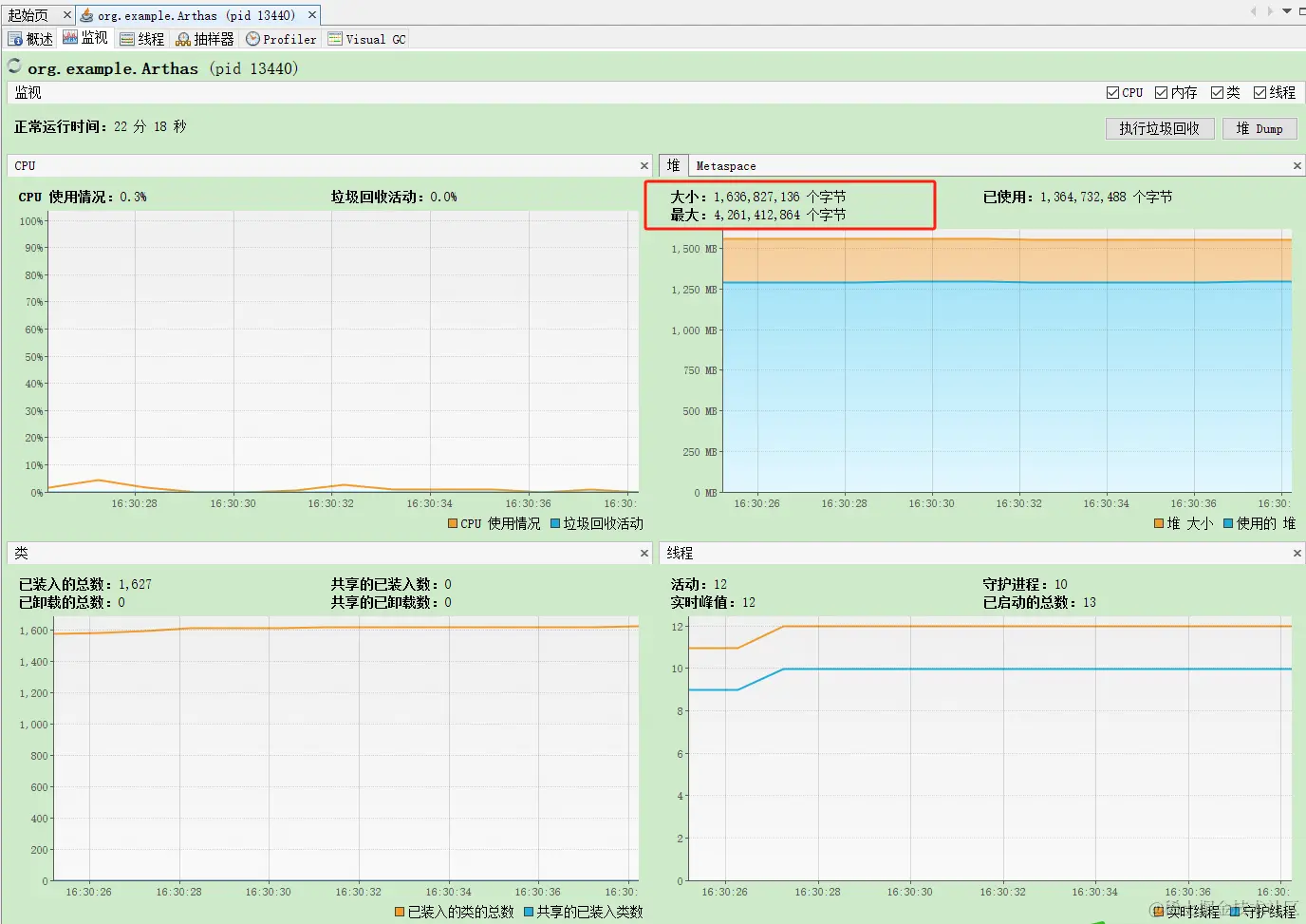可以看到Java应用的最大堆内存是4G,当时我们生产是64G的物理内存,生产Java应用的最大堆内存是12G。