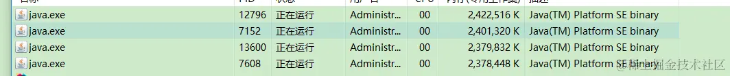 到这里基本上可以看出是运维人员发布Java应用时并没有设置JVM参数,而是使用默认JVM参数。导致每个Java应用占用过高。虽然是小问题,但生产上每个Java占用12G内存还是比较吓人的。