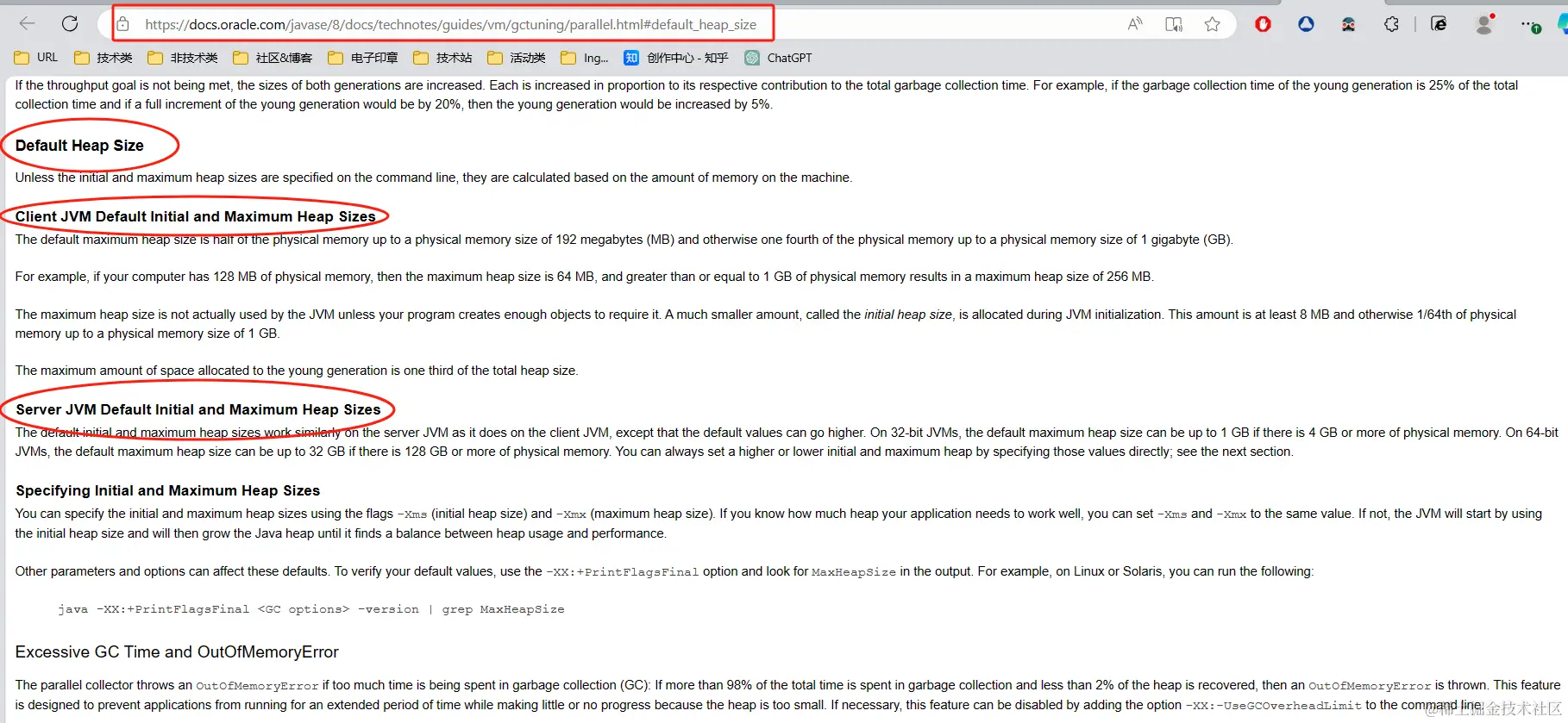 以下是Oracle官方对JVM默认参数的详细说明: