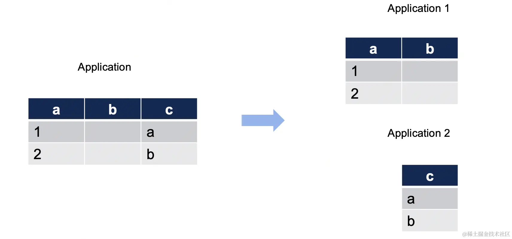 根据一些特殊的场景要求,需要保存原数据的部分数据,例如application1保存全量订单,application2只需要部分出票成功的订单,进行后续分析操作,则可以使用子集的策略进行数据视图设计。