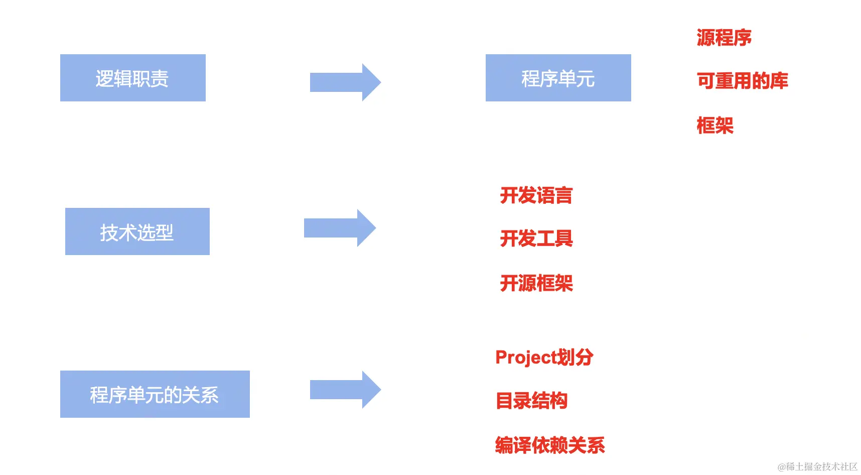 开发架构视图的任务,是将“逻辑职责”映射为“程序单元”,例如:要自主编写的“源程序”,可重用的库,框架等;同时进行开发技术选型,例如:开发语言,开发工具等,然后也需要确立程序单元间的关系,project划分,目录结构,编译依赖关系等。