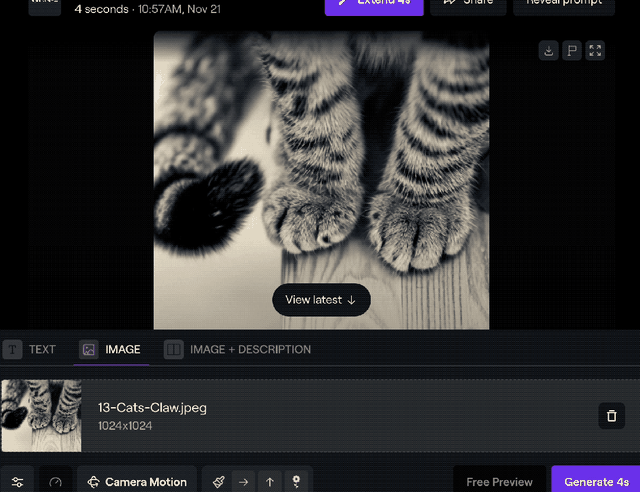 目前这个功能 现阶段还只擅长比较慢速的运动 ,比如着火、云朵漂移、烟雾飘散、人物缓慢抬头这种,如果想实现 小猫甩尾巴 的场景还是有点难为它。