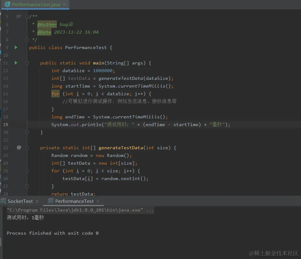 - 通过 generateTestData() 方法,生成测试数据,该方法使用了 Java 自带的随机数生成器 Random 来生成测试数据。