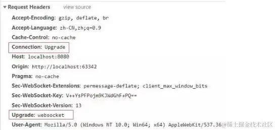 WebSocket 和HTTP虽然是不同协议,但是两者“握手”方式兼容。通过HTTP升级机制,使用HTTP的Upgrade和Connection协议头的方式可以将连接从HTTP升级为WebSocket。