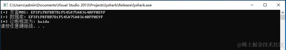 std::cout << "[+] 提取指纹: " << GetMd5(read_page.c_str(), read_page.length()) << std::endl;