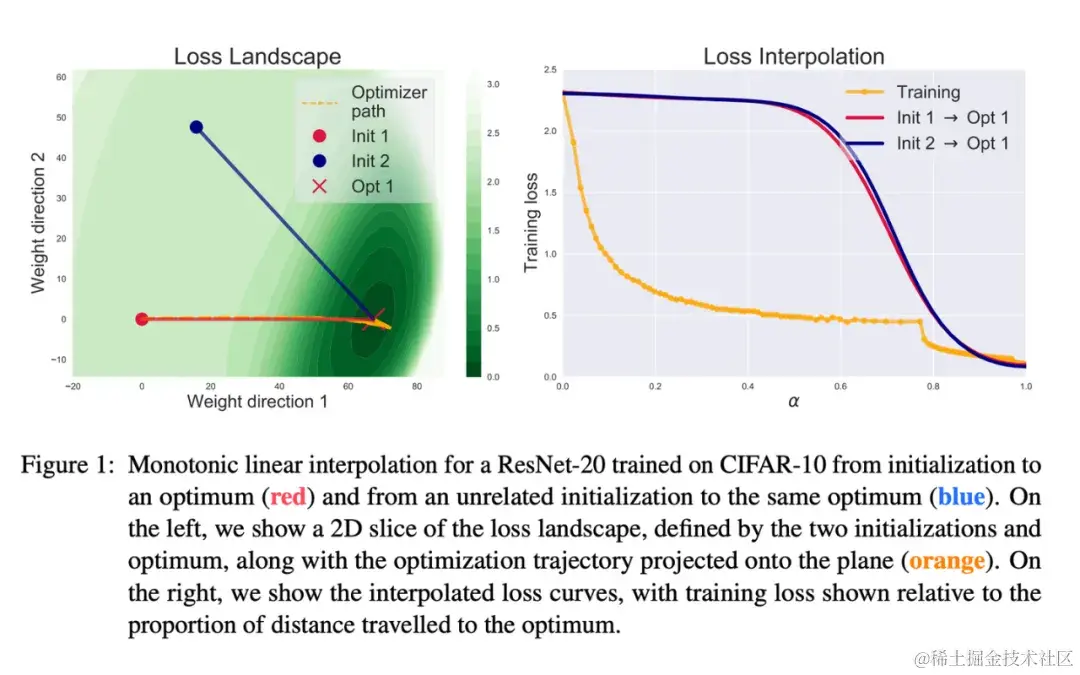 [LBZ+21] 沿着前人的工作,探讨了初始权重与训练完成后的权重,两者插值得到的一系列权重的性质。可以看到不同初始化的网络权重往往收敛到同一个盆地。虽然与训练路径不同,插值路径也是单调递减,没有凸起的现象。