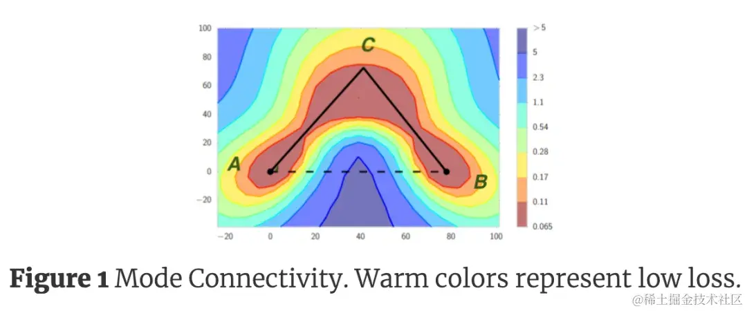[SEG+18] 中提到,在全连接层中交换任意两个神经元可以得到等价的神经网络。这个性质让随机初始化的网络可能收敛到非常不同的局部最优值。[DVS18] 则用过实验发现,不同的局部最小值之间可以通过平坦的路径相连。[KWL+20] 同样支持了这点:任意两个局部极小值之间都可以通过一条不会太”扭曲“的路径相连,这条路径上的损失最多比局部最优处的损失高一点。