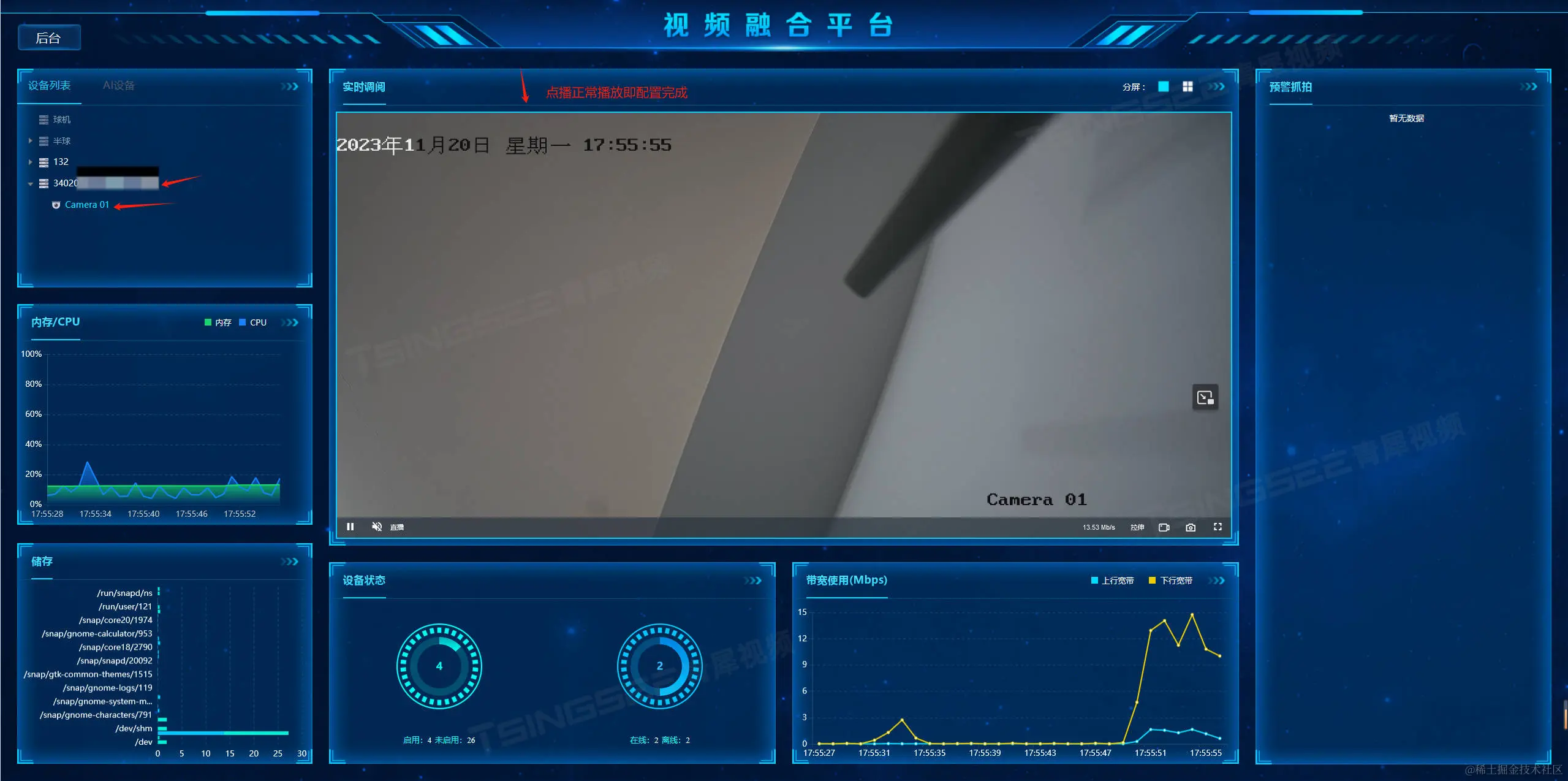 安防视频监控系统EasyCVR平台可拓展性强、视频能力灵活、部署轻快,可支持的主流标准协议有国标GB28181、RTSP/Onvif、RTMP等,以及支持厂家私有协议与SDK接入,包括海康Ehome、海大宇等设备的SDK等,能对外分发RTMP、RTSP、HTTP-FLV、WebSocket-FLV、HLS、WebRTC等视频流。平台也提供丰富的API接口供开发者集成、调用与二次开发。AI智能大数据视频分析EasyCVR平台已经广泛应用在工地、工厂、园区、楼宇、校园、仓储等场景中。感兴趣的用户可以前往演示平台进行体验或部署测试。