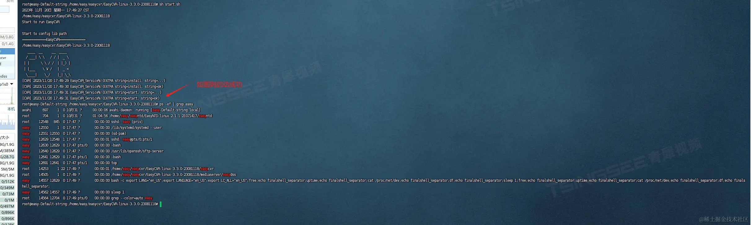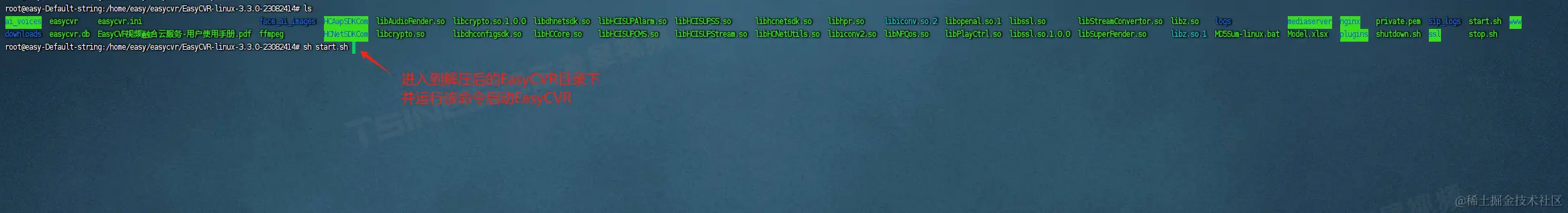 3)进入到解压后的EasyCVR目录下,并运行start.sh命令启动EasyCVR;