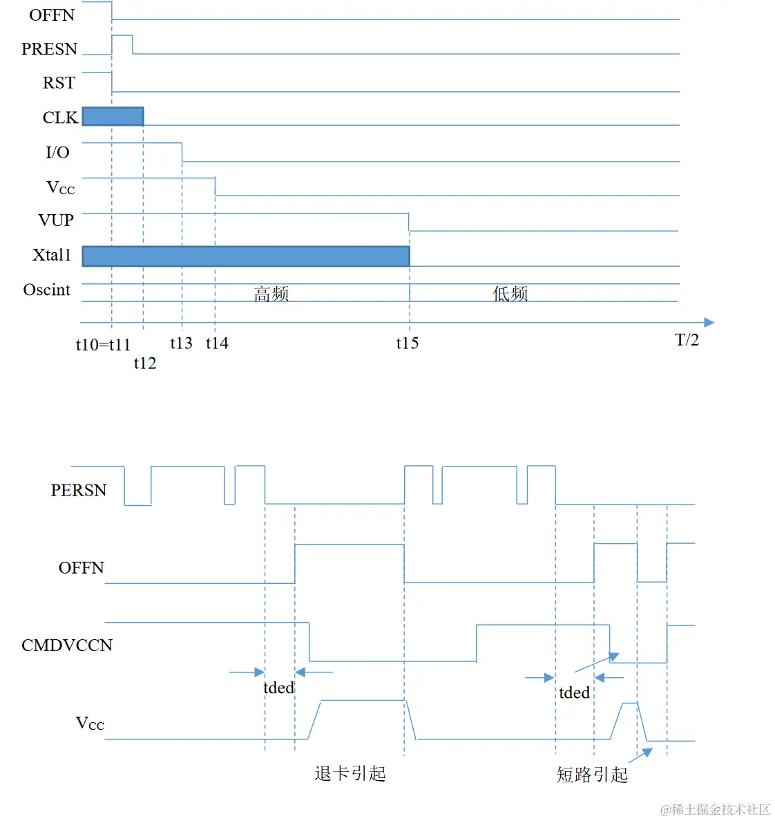 2、 CMDVCCN 处于低的状态(正在读卡周期):OFFN 立即拉低,退出激活,直到 CMDVCCN