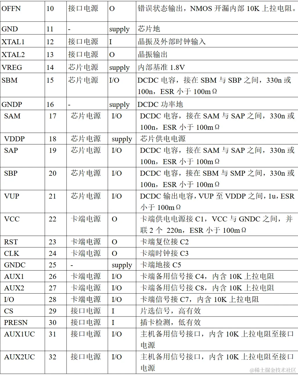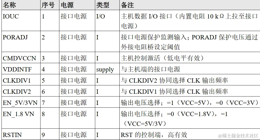 I/OUC、AUX1UC、AUX2UC 设置为弱上拉模式停止信号从卡端传送。OFFN 三态输出。
