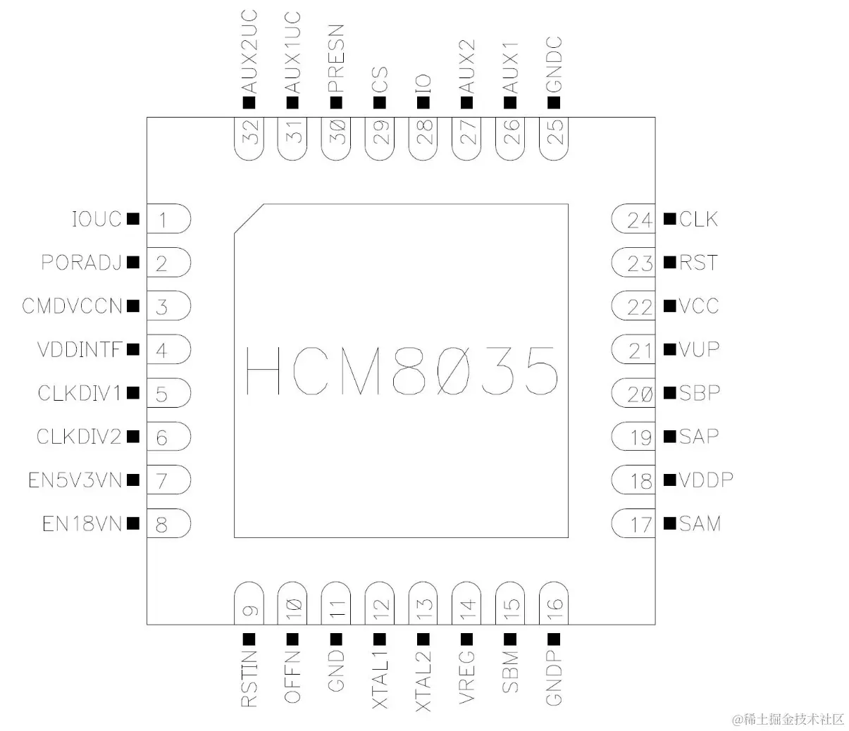 HCM8035是一款简洁且低成本的智能IC卡模拟接口芯片。内嵌升压模块,支持5V,3V,1.8V全电压读写。具有全面的安全保护机制,包括ESD保护,端口短路保护,电源上掉电保护。外围元件数目少,采用QFN32L封装。