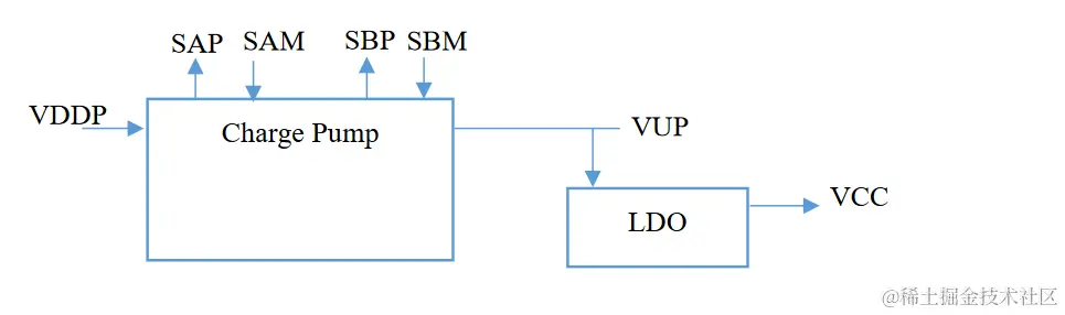 VDDP、VREG、VDD(INTF)电压监控信号会发送给逻辑控制部分参与控制芯片复位