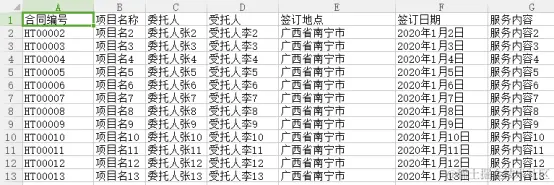 每份合同的合同要素可以整理在Excel文件中,如下截图所示。