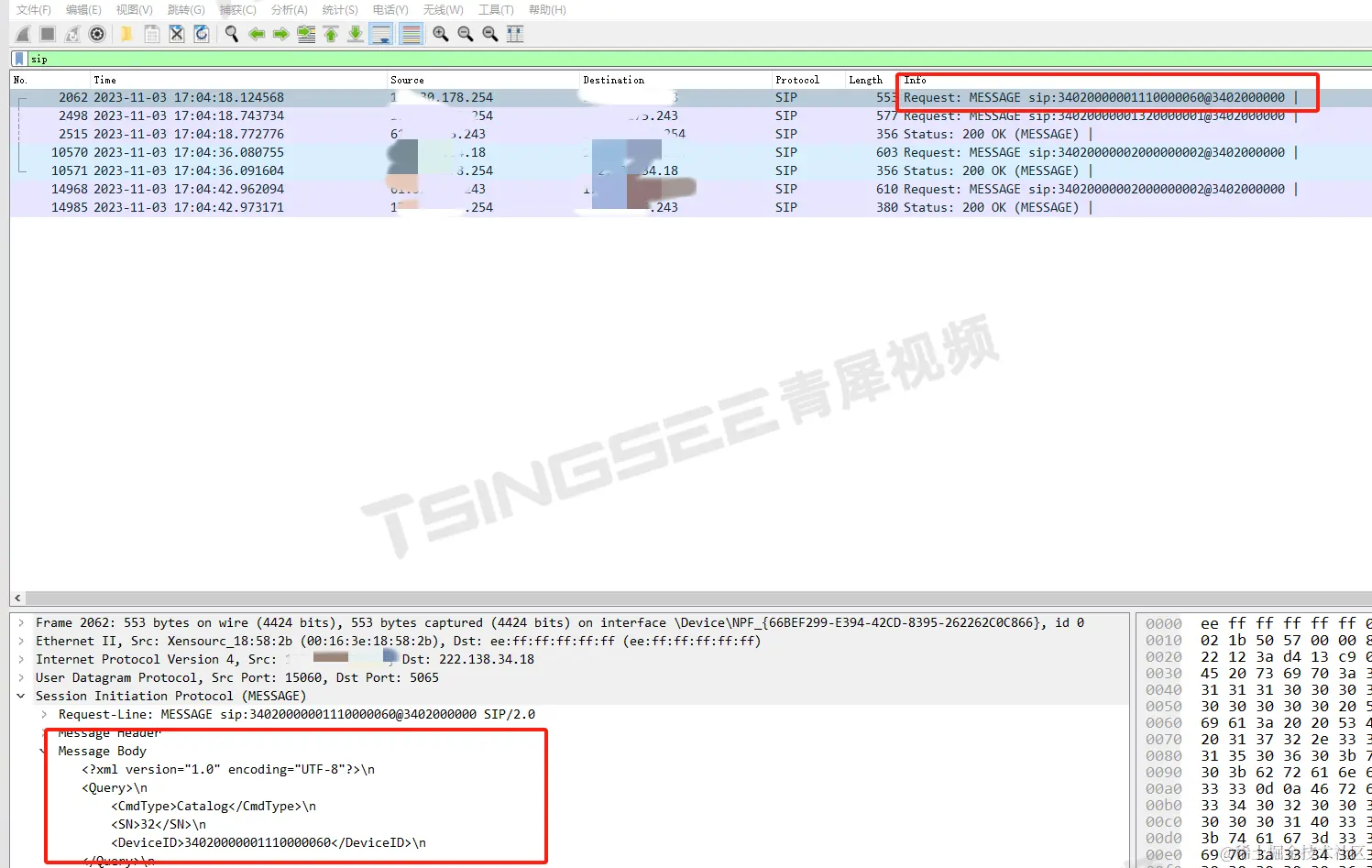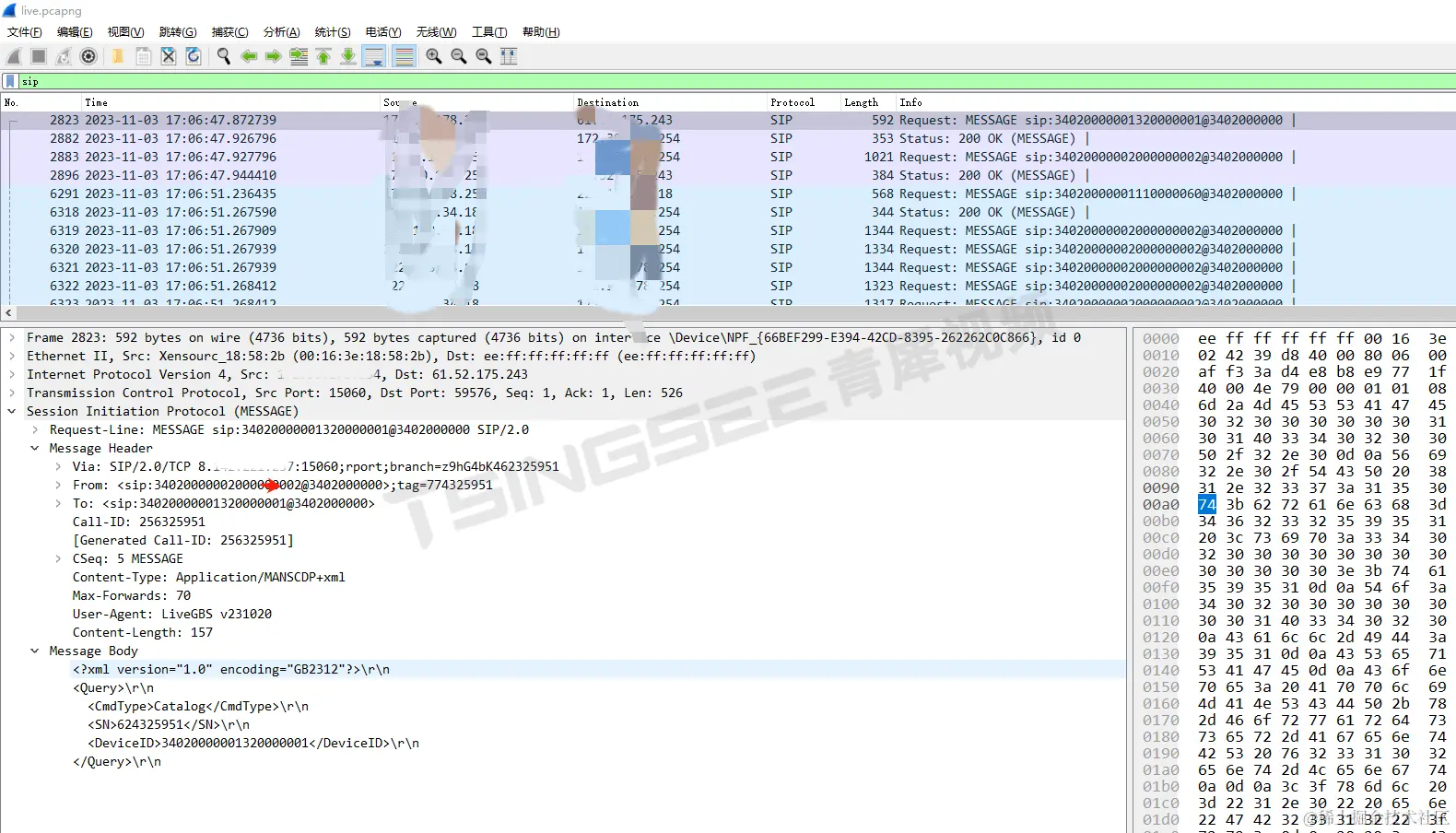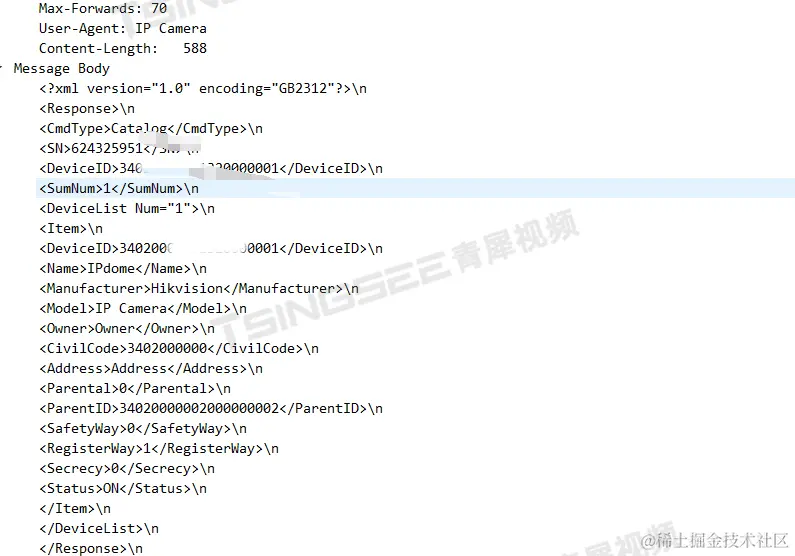 1)因为用户现场是国标接入,于是抓包查看消息进行分析;