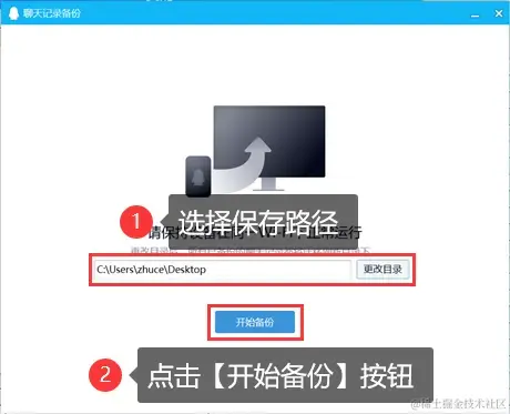 步骤3:在弹出页面中点击【打开电脑授权】,然后在电脑上选择一个您想要保存备份的电脑路径,最后单击【开始备份】按钮。
