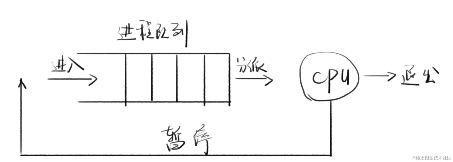 - 等待执行的进程中都是非运行态