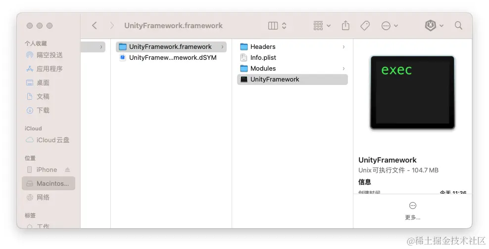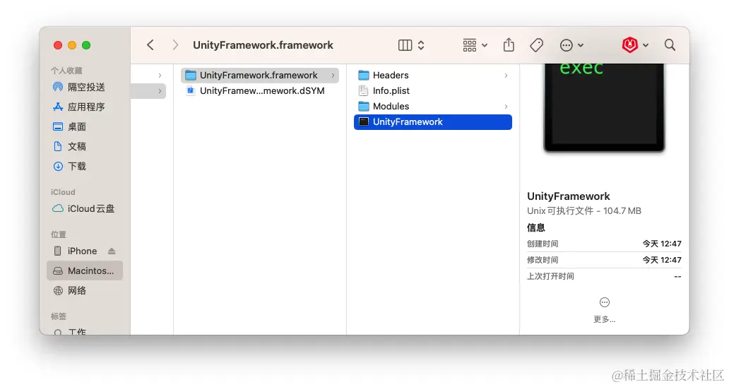 Unityframework可执行文件大小由最初的170m降为104.7m,减小了65.3m(修改后会不会影响库的稳定性,还需要去验证)。