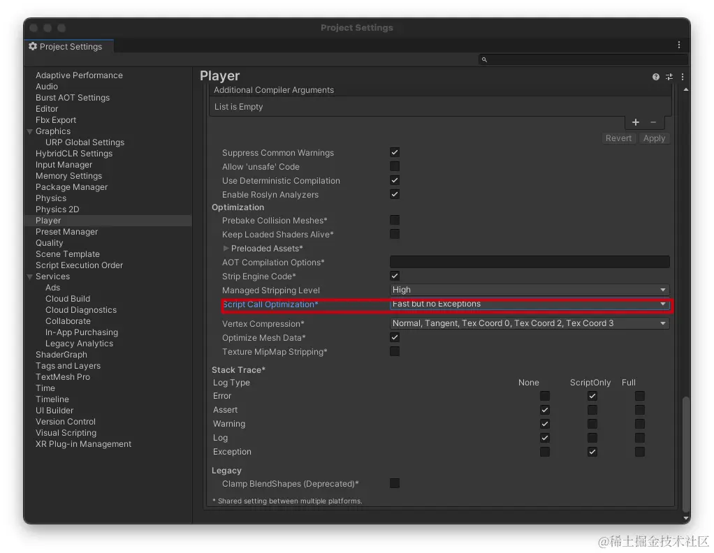 需要做很多裁包行为的,包括管线,用到的一些库之类的,以及项目本身的一些配置开关也会有影响(和unity版本关系不大,我们目前用的unity版本之前即构也用过),比如: