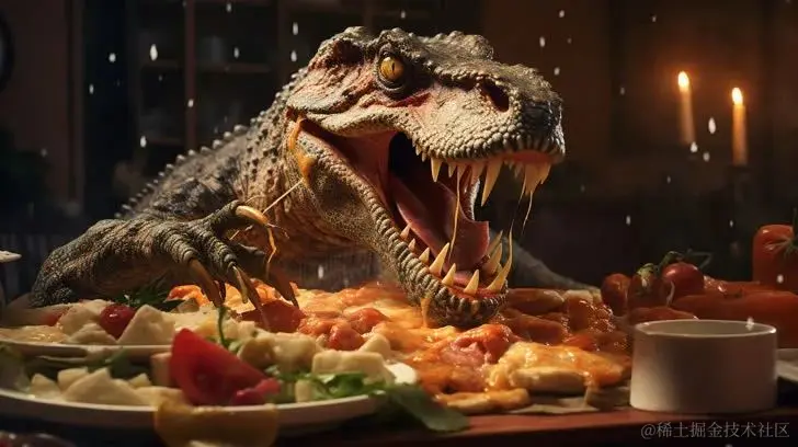 4. 吃烤宽面条的巨兽龙AI绘画关键词giganotosaurus eating lasagna , sitting on a table and using fork , 3d, animate, illustration巨兽龙吃烤宽面条,坐在桌子上,用叉子,3d,动画,插图