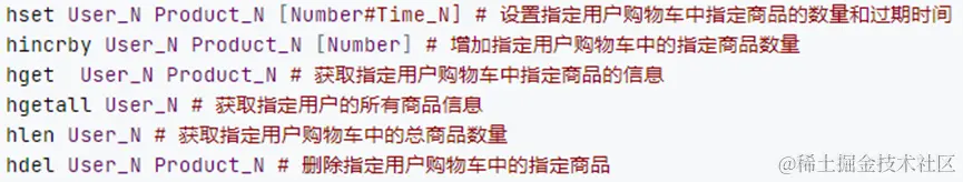 - 获取某个用户购物车中的所有商品清单仅需要一个hgetall命令即可