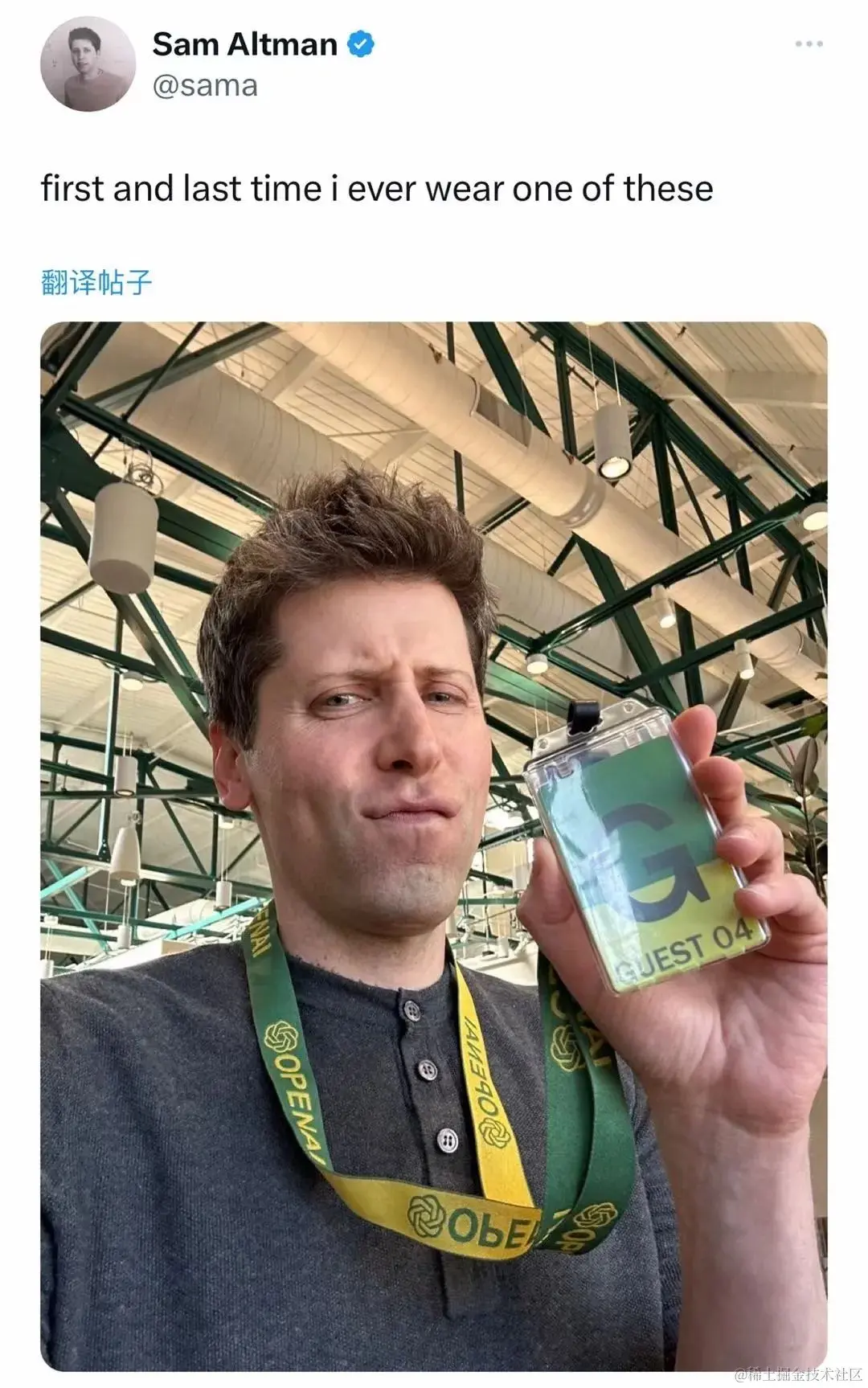 在 20 号,Sam·Altman 已经在推特发文表示最后一天了并且手持临时访客的通行卡进出 OpenAI。也可以确定他的离开是已成定局了。