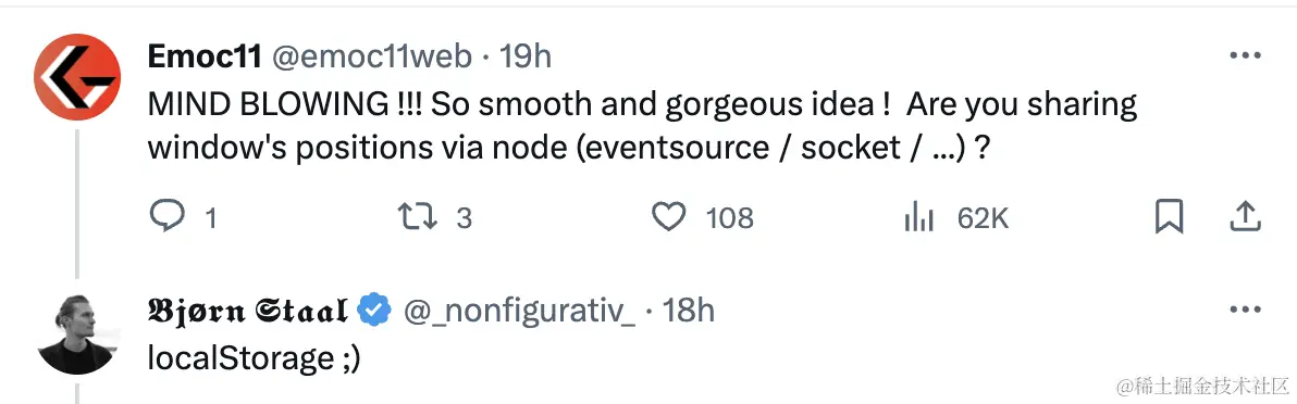 在效果中,当打开两个页面,他们能感知到对方的位置并作出反应,这是如何实现的呢?