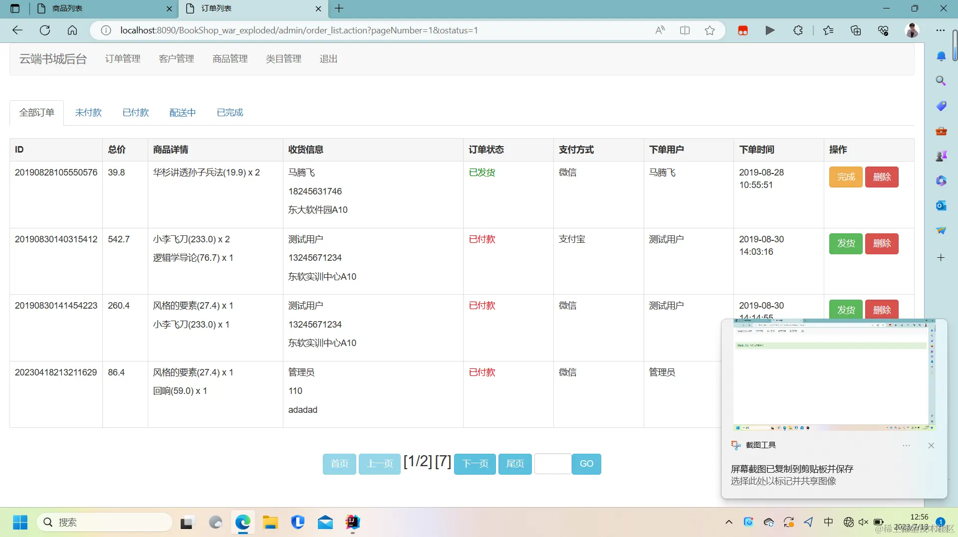 订单管理模块:管理员可以查看和管理用户的订单信息,包括订单状态、付款情况等。