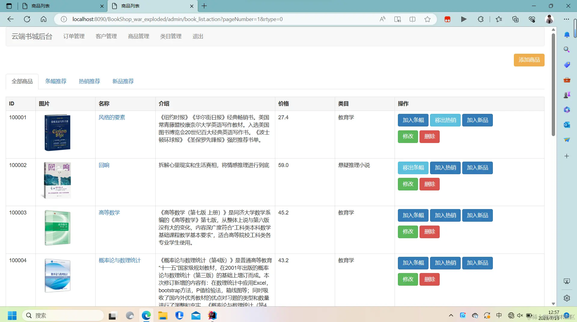商品管理模块:管理员可以管理图书的添加、编辑、删除等操作。