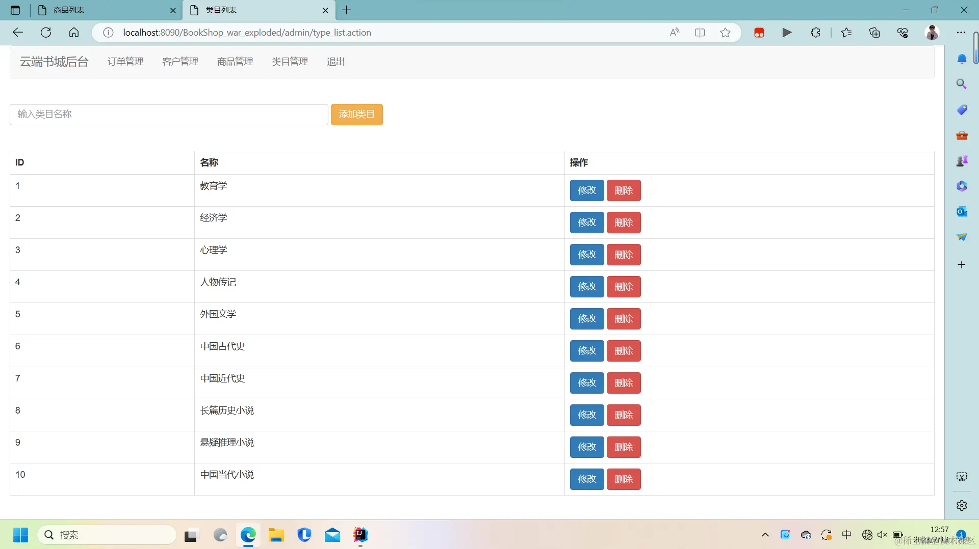 类目管理模块:管理员可以管理图书的类目信息,包括添加、编辑、删除等操作。