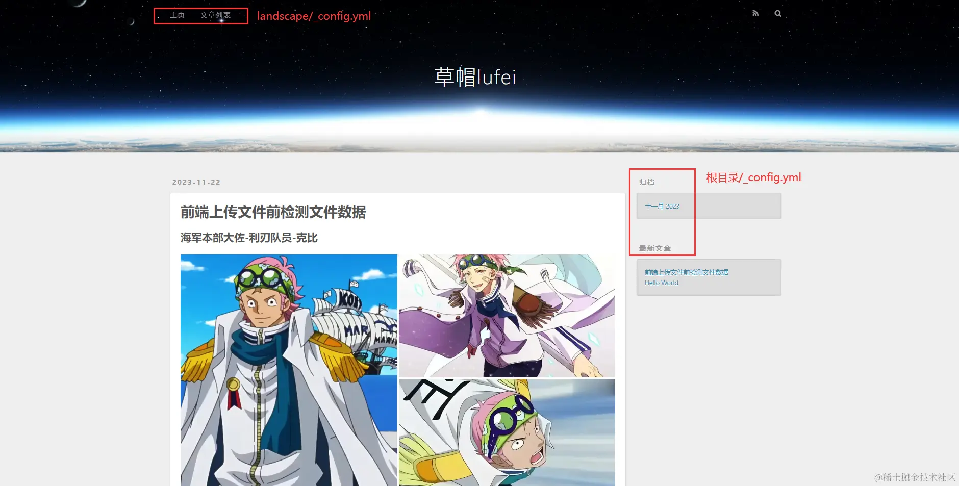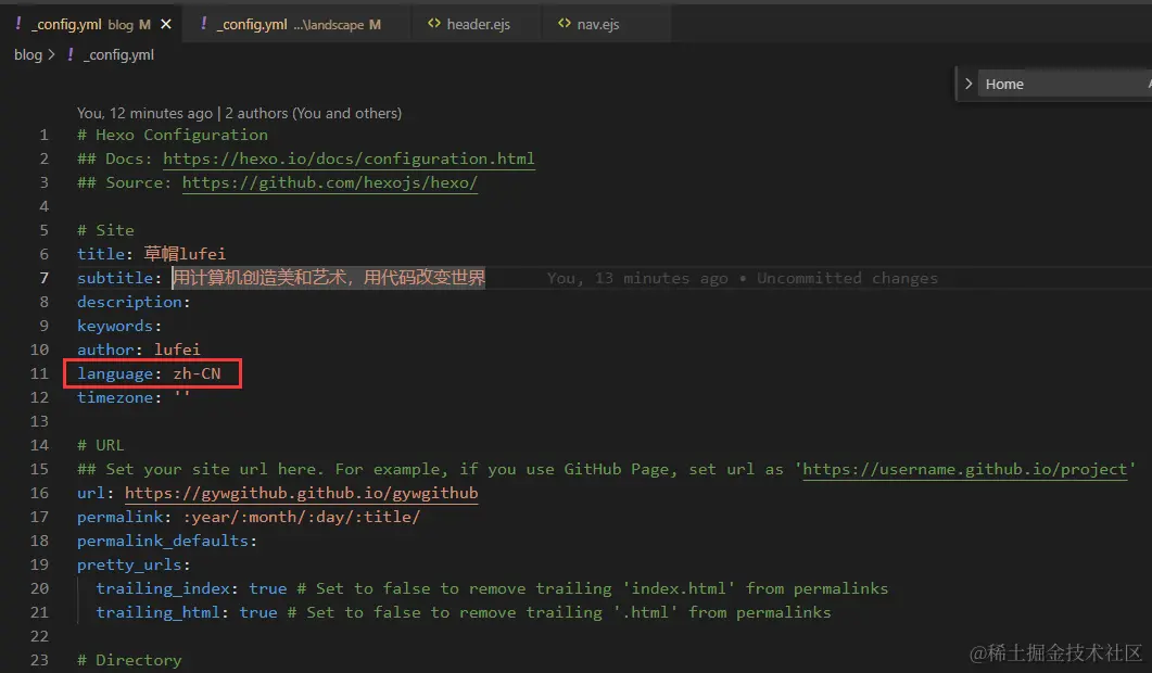 不同的 _config.yml 下的配置修改的地方不一样,下图做了简单的标注