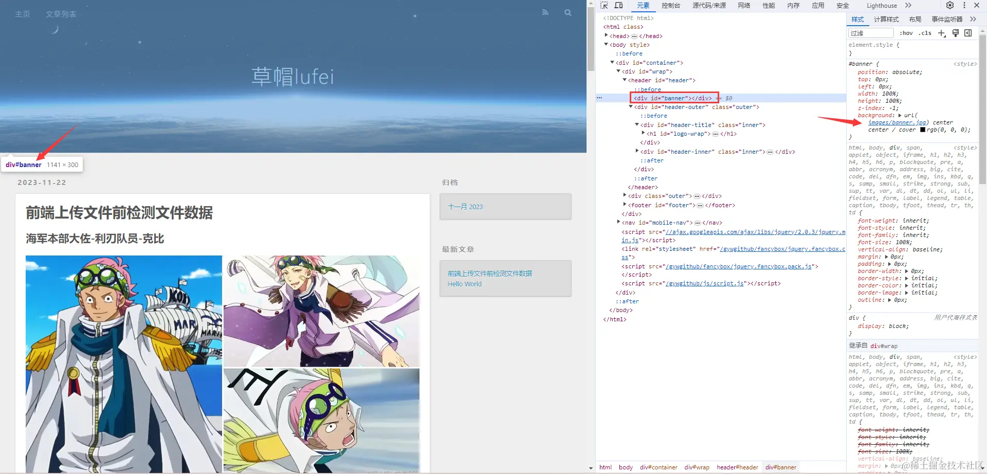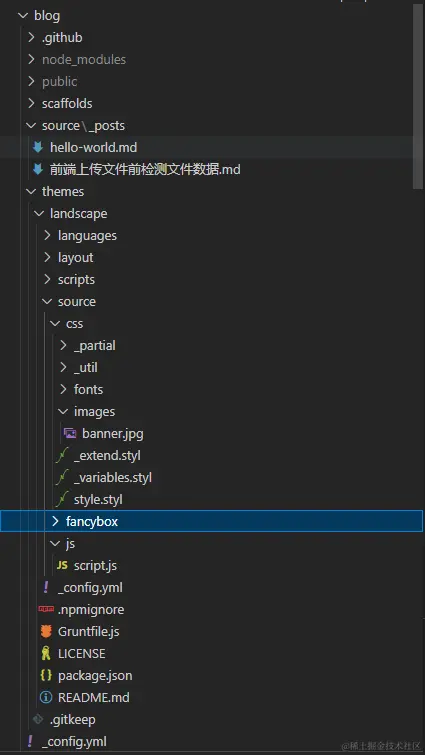 通过分析页面元素,了解到了主页图片是用一个 id 为 banner 的 div 显示的,通过 div 的 background 属性显示了一个相对路径的图片,既然是相对路径,说明图片在项目仓库里存着,通过 images/banner.jpg 得知图片路径和图片名称,去项目里找一下,在 /themes/landscape/source/css/images/banner.jpg 下面找到了主页图片