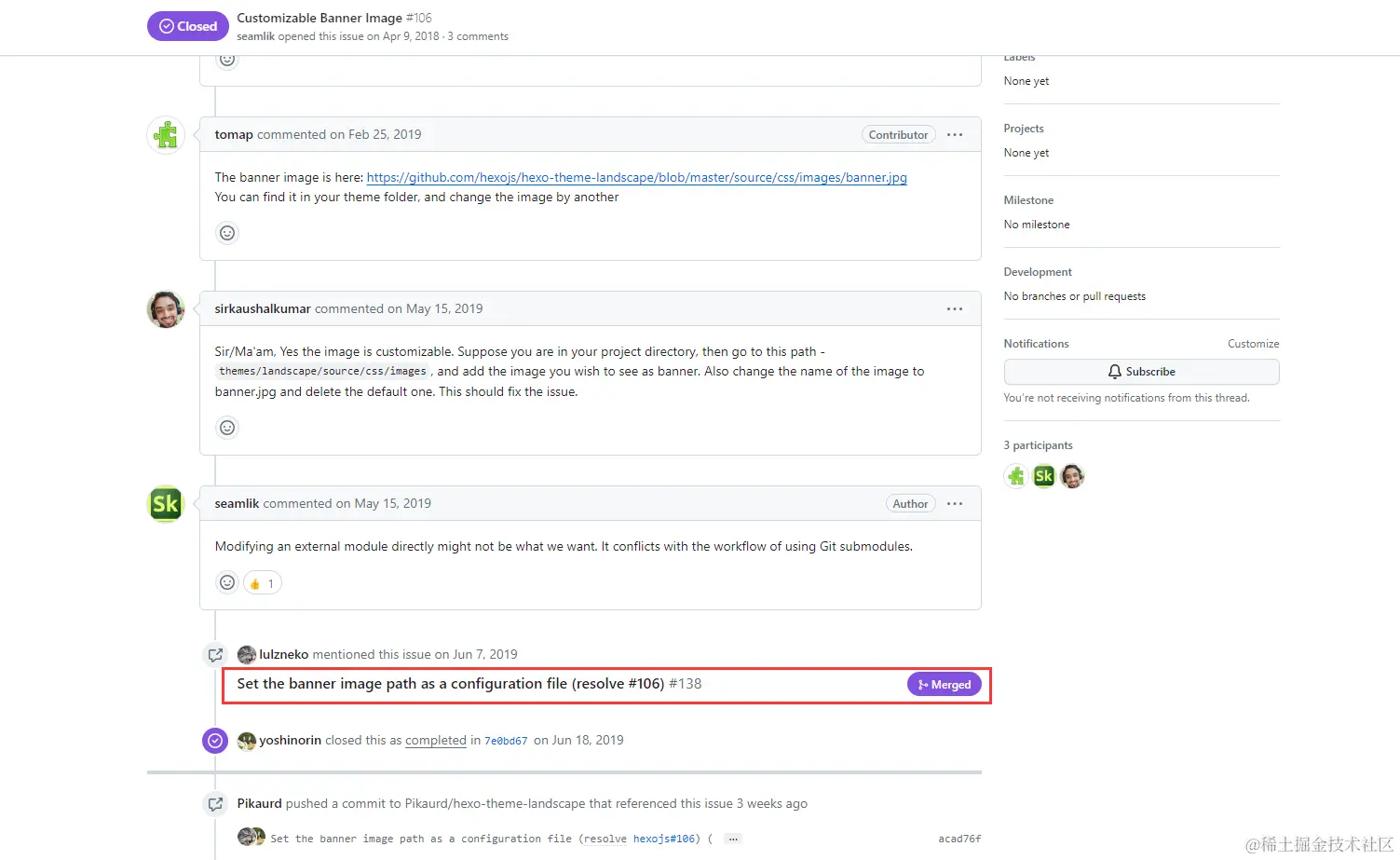还发现一个有意思的地方, hexo-theme-landscape官方已经把这个问题作为配置解决了,并且已经合并了,查了一下版本发现官方正式版本已经 v1.0.0 了,我用的默认的版本还是 v0.0.3,怪不得啥啥都没有,这那不支持.....