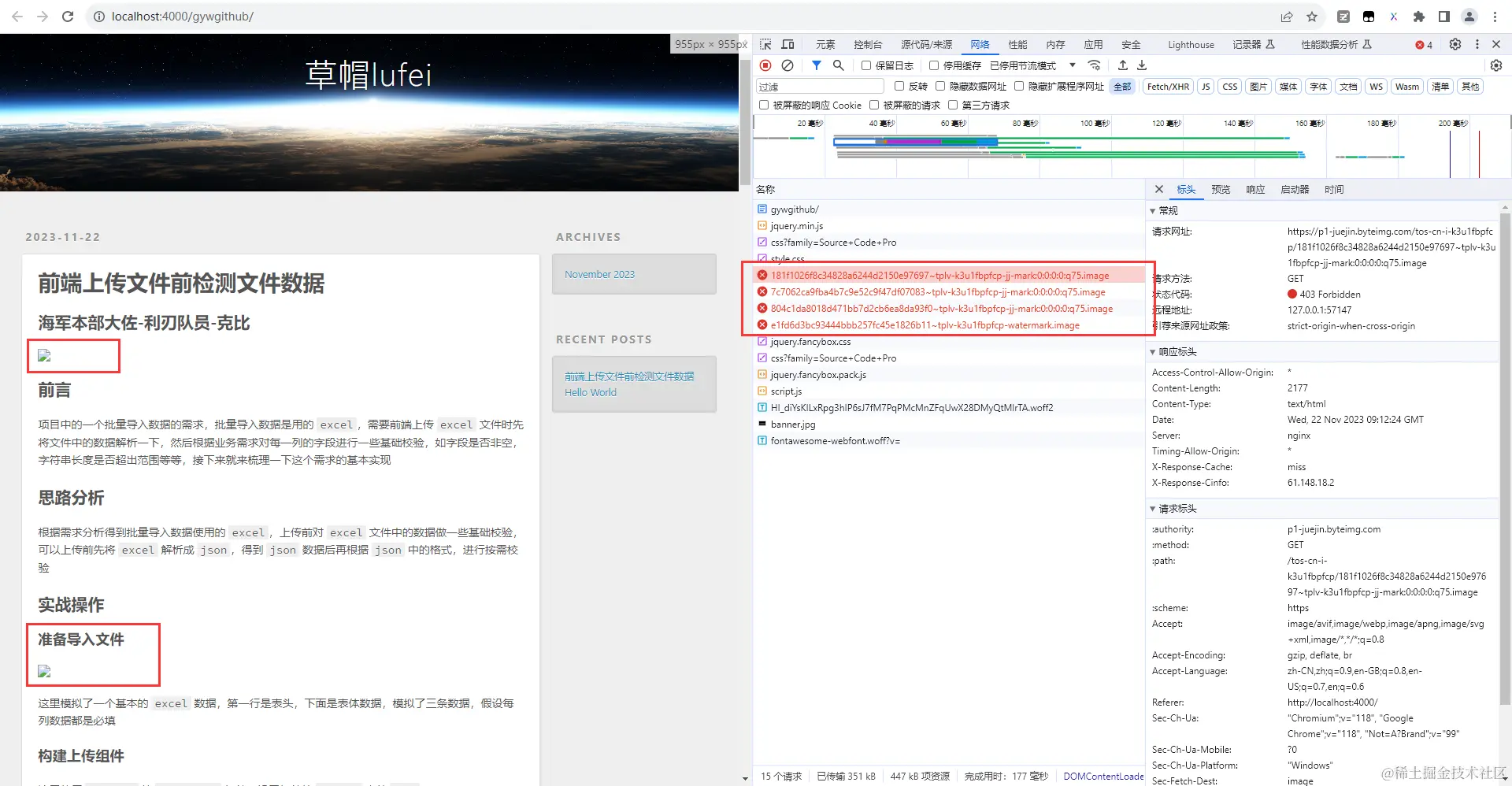 由于图片资源是外部链接,发现图片资源的请求 403 了