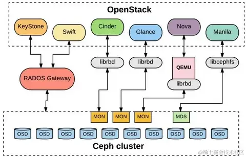 通用的 RADOS 存储结构和可靠的分布式存储技术。通过统一接口可以更好地处理各种数据类型,以及整合其他存储服务的优势,从而提供块存储和对象存储和文件存储三种存储功能。