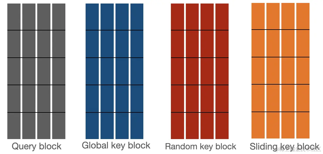 | 块稀疏注意力 | 2 x block_size | 3 x block_size | num_random_blocks x block_size |