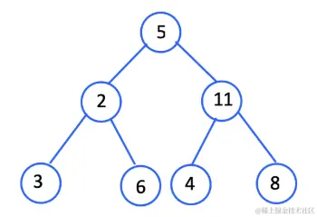 中序遍历输出:2 3 5 6 8 9