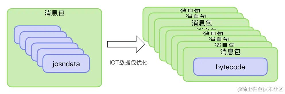IOT设备本身提供的是串口服务器编码的字节流数据,项目最初为了满足现场数据的实时展示,会在本地对IOT的字节流数据进行解码再转发到MQTT服务器,这一过程IOT数据的编码格式由字节流编码变成了Json格式的数据,大大增加了传送数据包的大小。