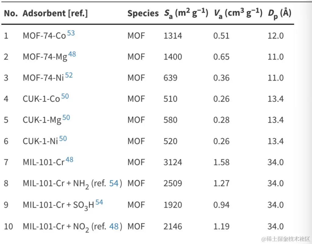 在选取的 460 种吸附剂中有 148 种具有所有的结构特征,相关结构参数为可达表面积 (Sa) 、有效孔容 (Va) 和孔径 (Dp) 。