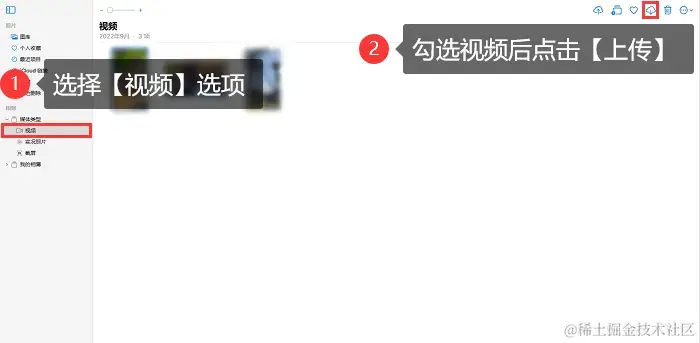 步骤4:找到想要恢复的视频,然后点击右上角的【上传】按钮将视频下载到电脑上即可。