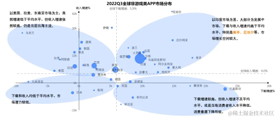 从中国出海App在各个区域中所占据份额来看,各个地区都具有非常不同的特征: