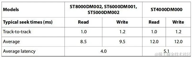 由于随机IO的LBA值不连续,当控制器转换为CHS时比如在扇区或者柱面方面存在跳跃的情况,这就需要寻道时间或者旋转等待时间,或者两者兼而有之。这样比如导致IO的时间延长。而对于顺序IO,在IO之间则不存在寻道时间和旋转延迟。如下表是另外两个品牌硬盘的具体的参数,大家可以了解一下上述参数的具体数值及大概关系。