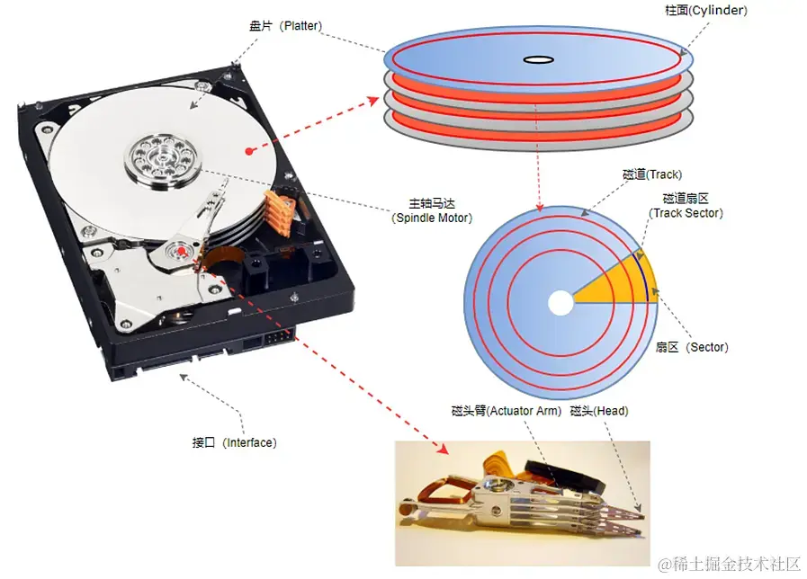 了解了硬盘的发展简史,接下来我们从硬盘的内部深入介绍一下硬盘。同时,结合磁盘的结构特点,我们将深入介绍一下磁盘的访问性能问题。