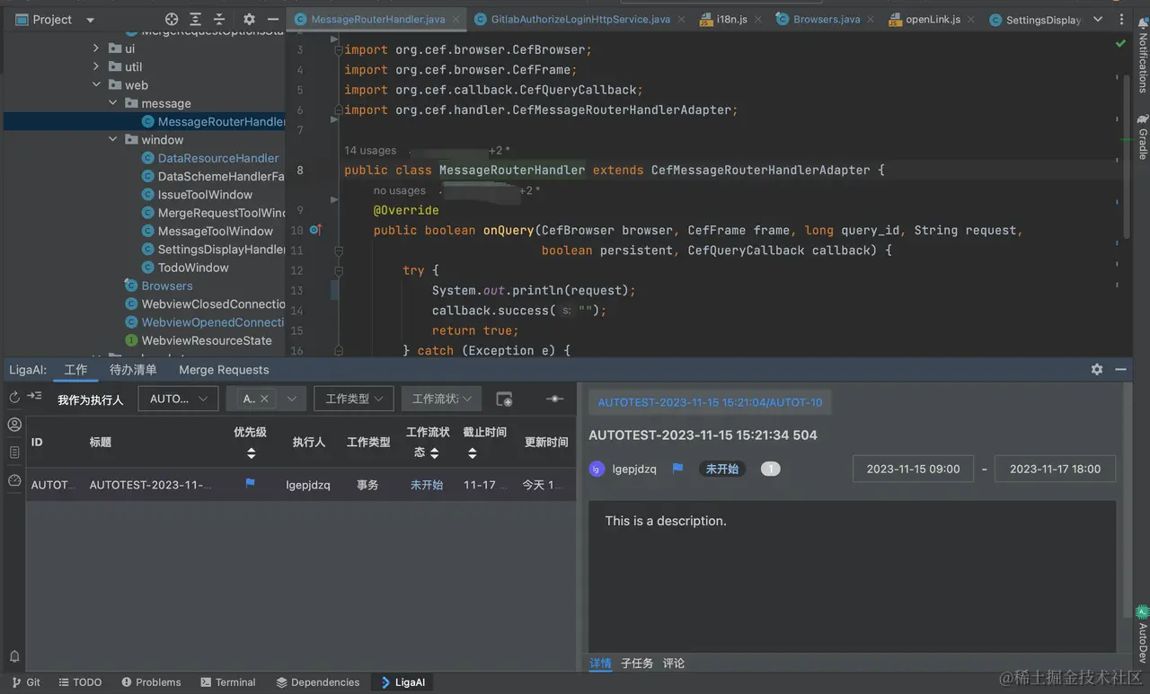 下面以 LigaAI Jetbrains 插件为例,介绍集成 JCEF 的过程。