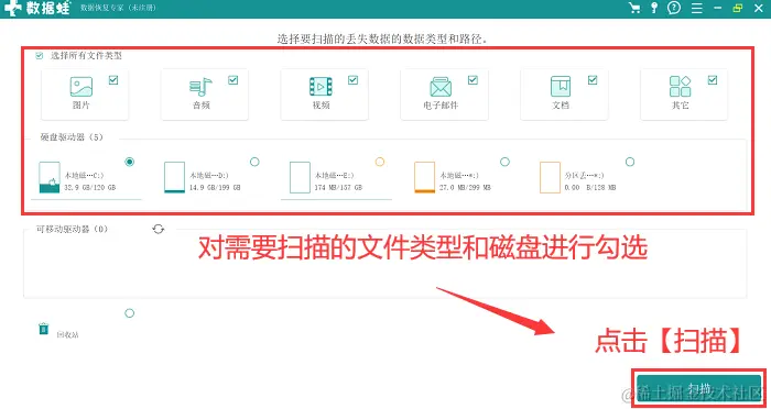 这款软件专注于数据恢复,在数据丢失后越早使用软件进行扫描,数据被扫描到的概率会越大。且软件支持多种类型的文件扫描,如果需要使用软件,可以按照下方步骤操作。