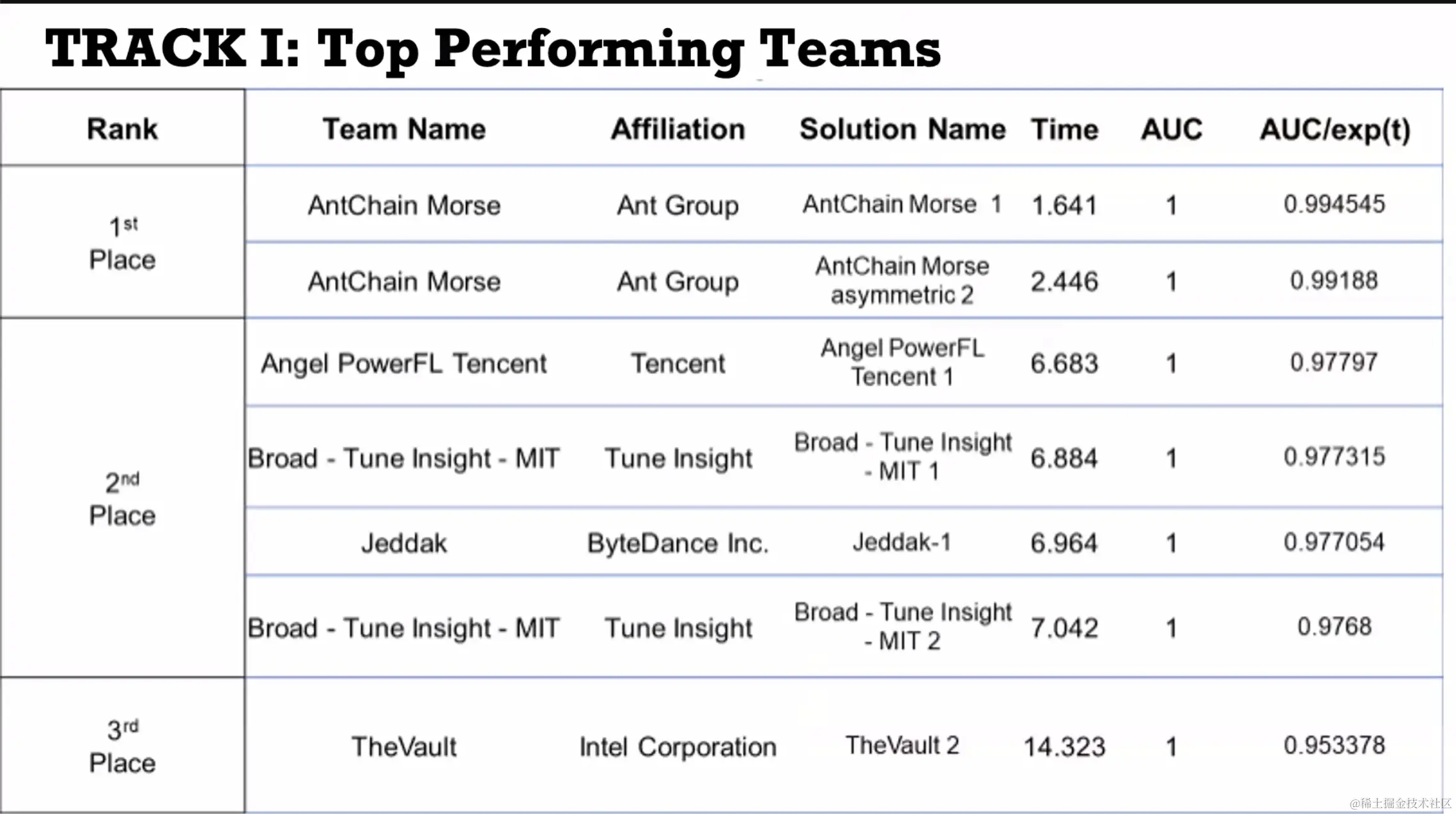 根据主办方设置的两个测试样例,我们的方案在仅使用2台安全虚拟机、共计8个可用线程的的严格限制下,最多耗费2.6小时就运行完成了测试,成为机密计算领域13个参赛队伍中唯一完赛的团队;同时我们的方案保证了准确率在99%以上,且可执行代码(TCB)也仅有920KB大小。