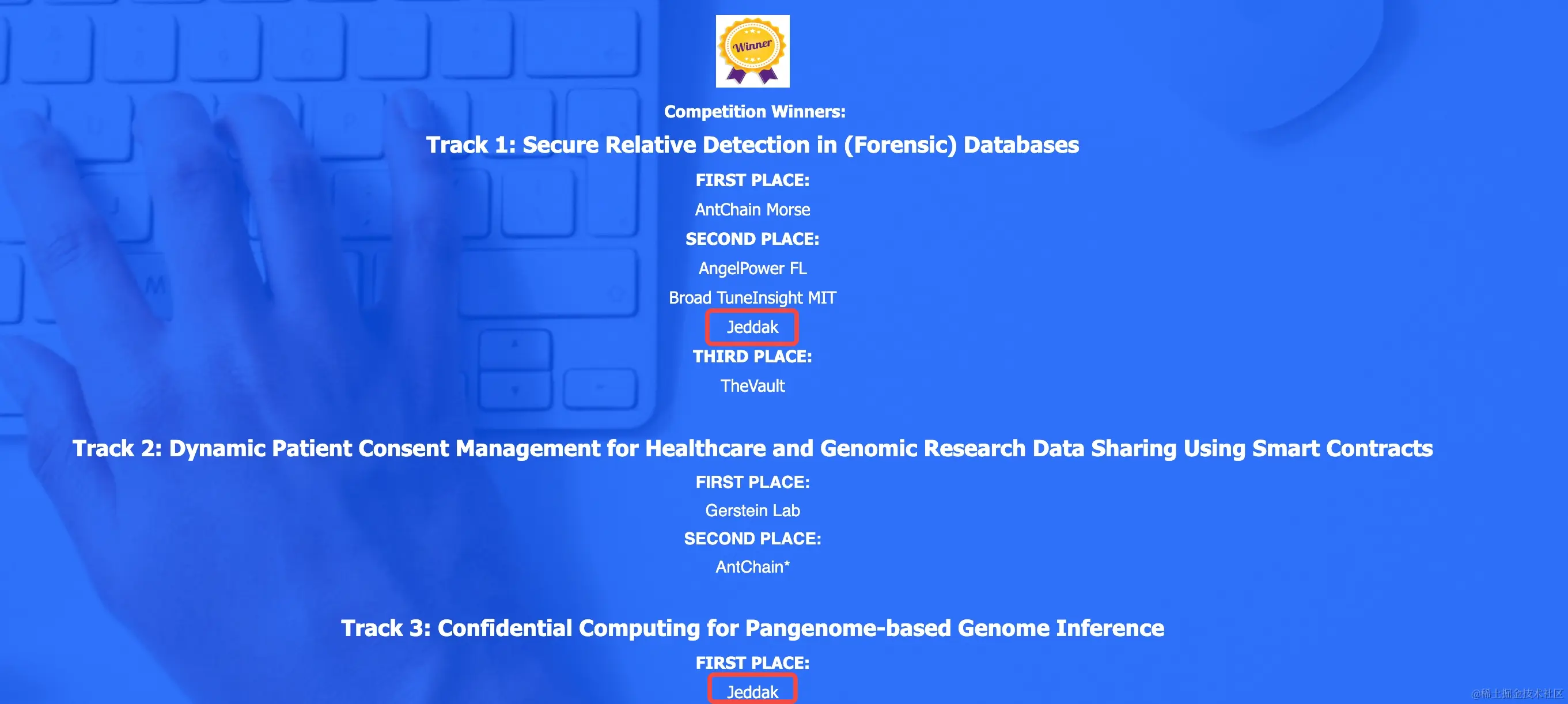 整个方案是Jeddak Team联合香港城市大学、南方科技大学共同设计与实现。最终在本届iDash大赛上取得了第一名的优异成绩。