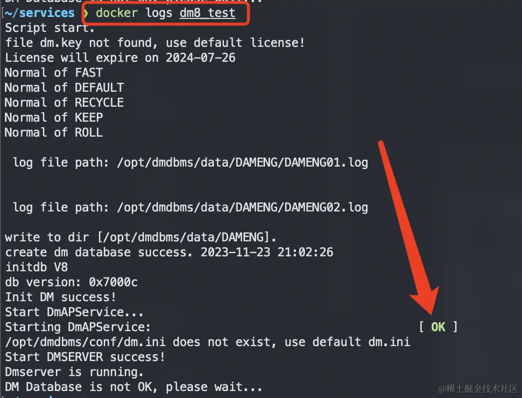 docker run -d -p 5236:5236 --restart=always --name dm8_test --privileged=true -e PAGE_SIZE=16 -e LD_LIBRARY_PATH=/opt/dmdbms/bin -e EXTENT_SIZE=32 -e BLANK_PAD_MODE=1 -e LOG_SIZE=1024 -e UNICODE_FLAG=1 -e LENGTH_IN_CHAR=1 -e INSTANCE_NAME=dm8_test -v $(pwd)/dm8_test:/opt/dmdbms/data dm8_single:dm8_20230808_rev197096_x86_rh6_64